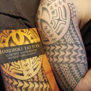 There’s a wealth of information on machine-free tattooing available on social media, especially Instagram and Tumblr. Several styles and techniques are examined and documented in my book Handpoke Tattoo: 23 Artists’ Words and Ink, along with explanations of sources and influences by the artists themselves. Other writers, such as Lane Wilcken (also a tattooer), document tattoo cultural revival, in Filipino Tattoos Ancient to Modern. Academics such as Lars Krutak examine hand tattooing in cultures where the art form is struggling for survival, while others, Aaron Deter-Wolf amongst them, examine tattooing in prehistory.